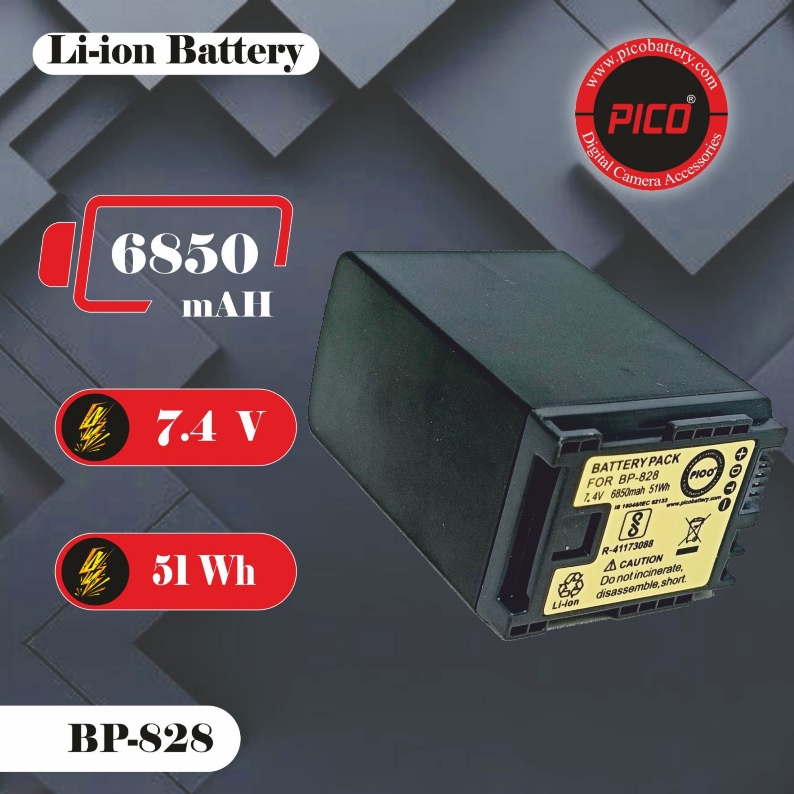 Pico BP-828 High-Capacity Li-ion Battery Pack (7.4V, 6850mAh) | Long-Lasting Power