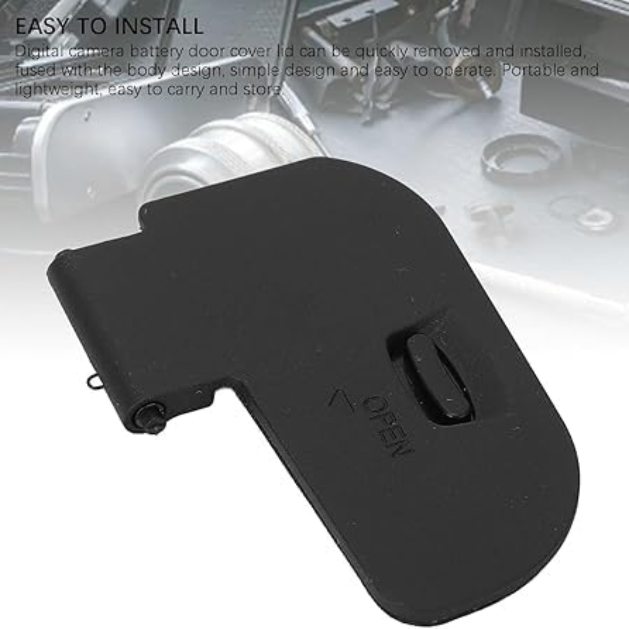 Lost or broke your battery door? Keep your Canon EOS R6 protected and functional with this high-quality replacement battery chamber cover. Specifically designed for the R6 model, this door ensures a secure fit, protecting your battery from dust, moisture, and accidental falls.
