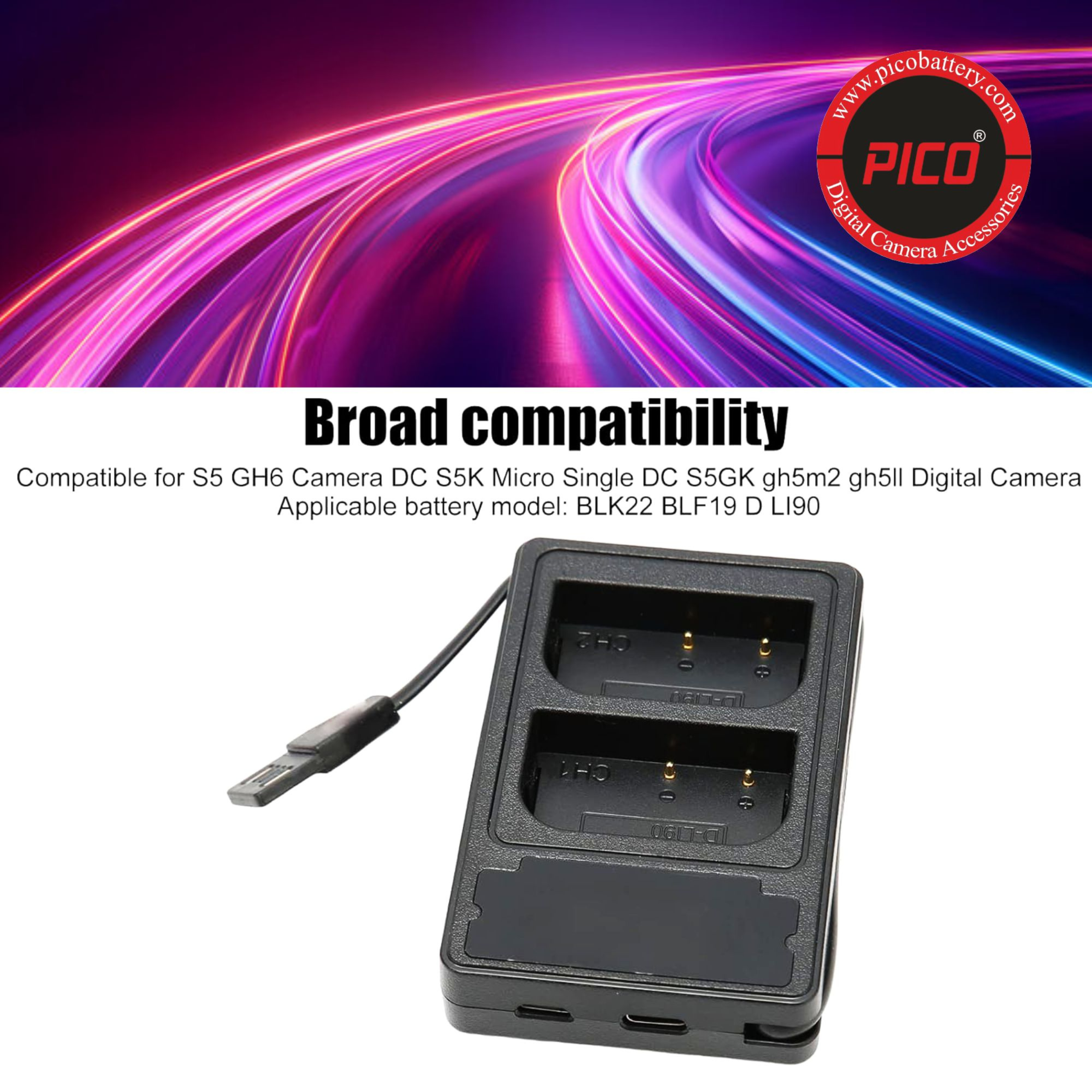 PICO DMW-BLF19 Dual USB Battery Charger for Panasonic Lumix GH3, GH4, GH5, G9