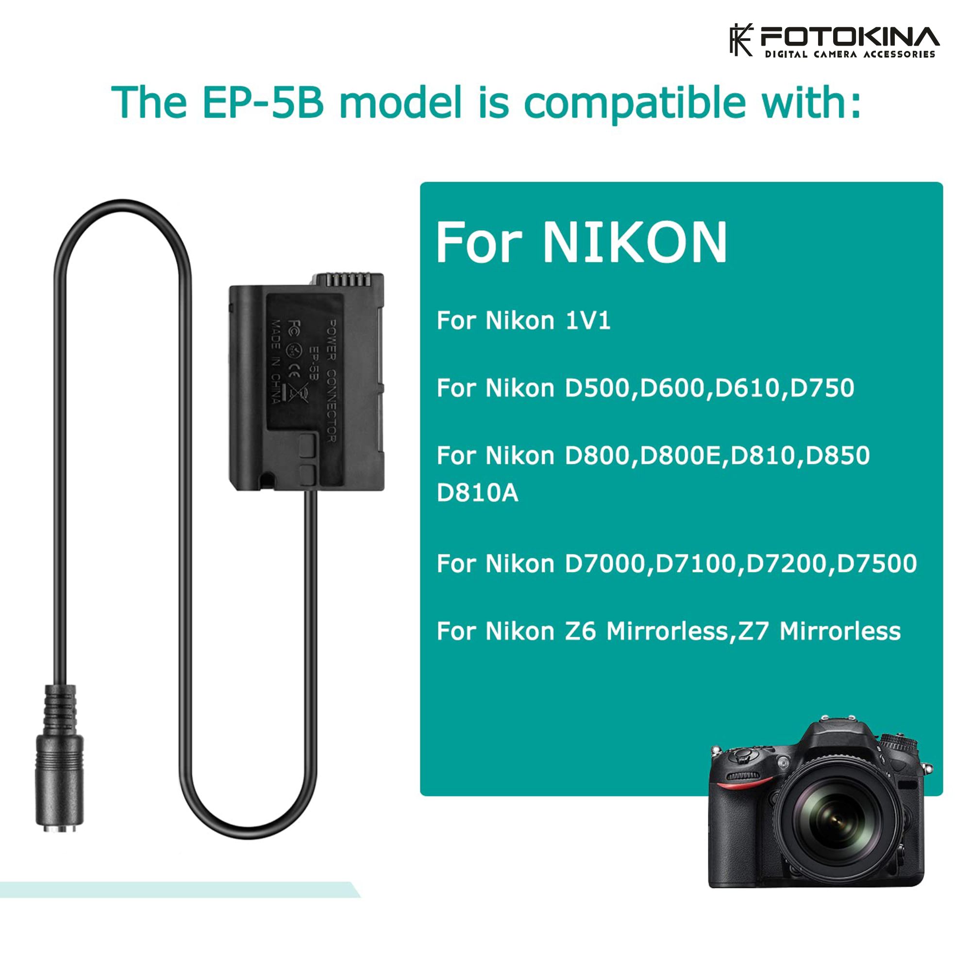 Never miss a shot again! Power your Nikon camera for extended shooting sessions, time-lapses, video, and studio work with the EN-EL15 (EP-5B) USB Dummy Battery Adapter Kit. This essential accessory replaces your standard EN-EL15 battery, allowing you to draw continuous, stable power from an external USB source.