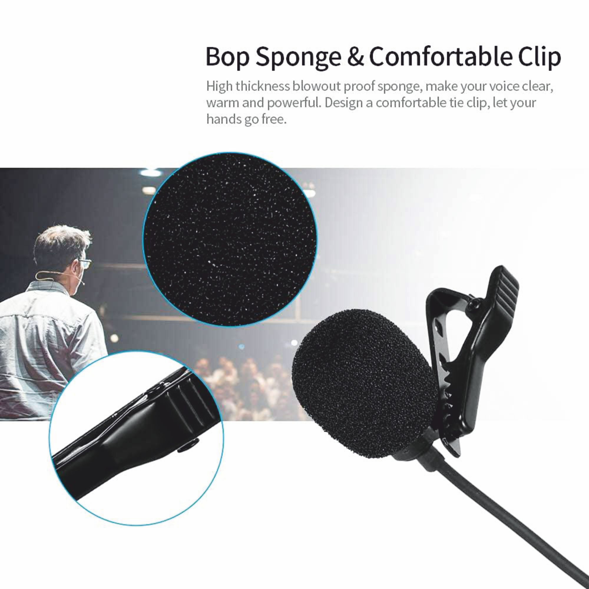 - 🪶 Hands-Free Operation: The durable, rotating clip allows you to securely attach the microphone to your collar, tie, or lapel, giving you complete freedom of movement.