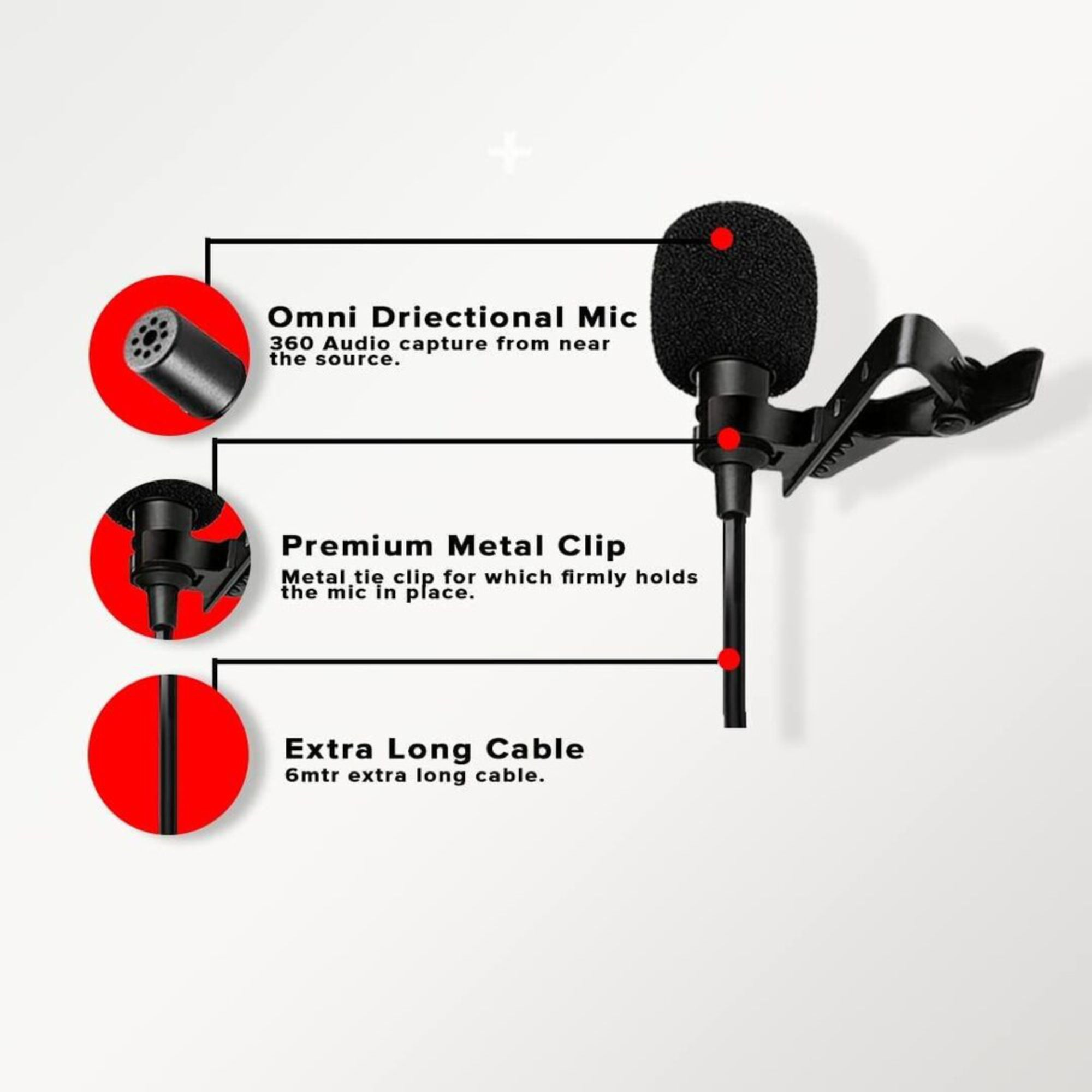 Featuring a 360° omnidirectional pickup pattern, it accurately captures your voice while minimizing background noise. The lightweight design and sturdy clip allow for hands-free use, making it perfect for creators, journalists, and professionals on the go.