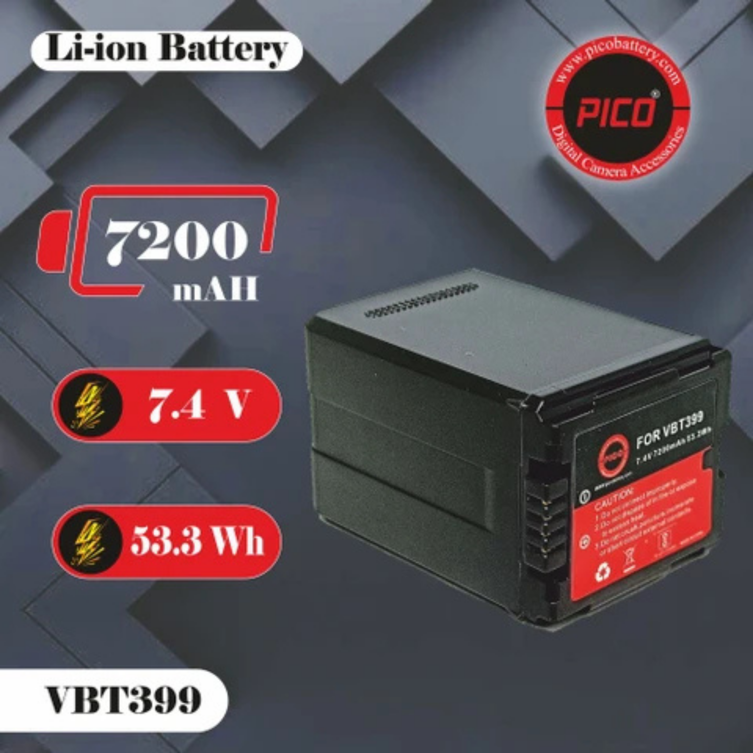 PICO VBT399 7.2V 7200mAh Battery for Panasonic Camcorders | High Capacity