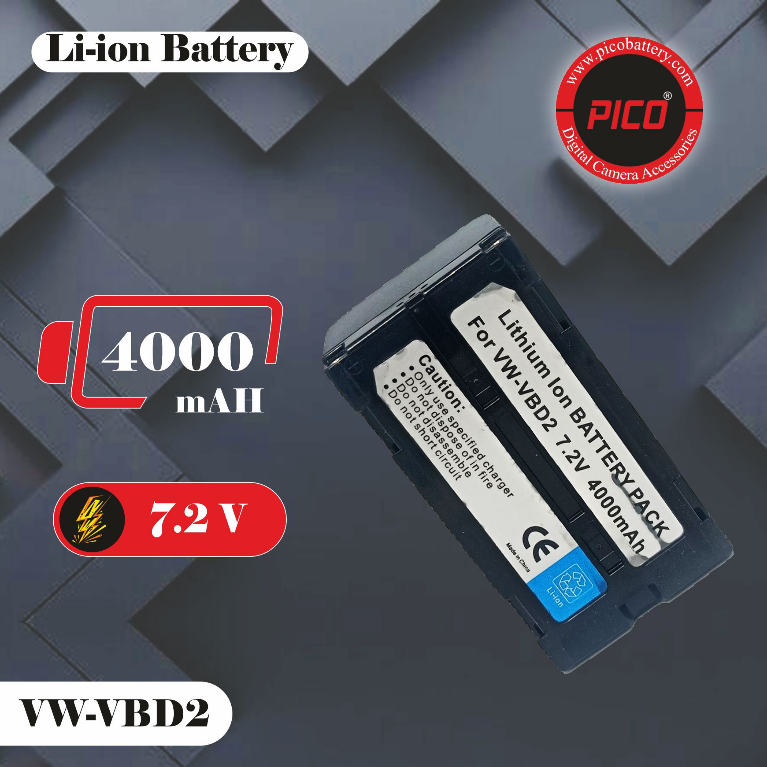 PICO VW-VBD2 Lithium-Ion Battery Pack (7.2V, 4000mAh) | High Capacity Replacement