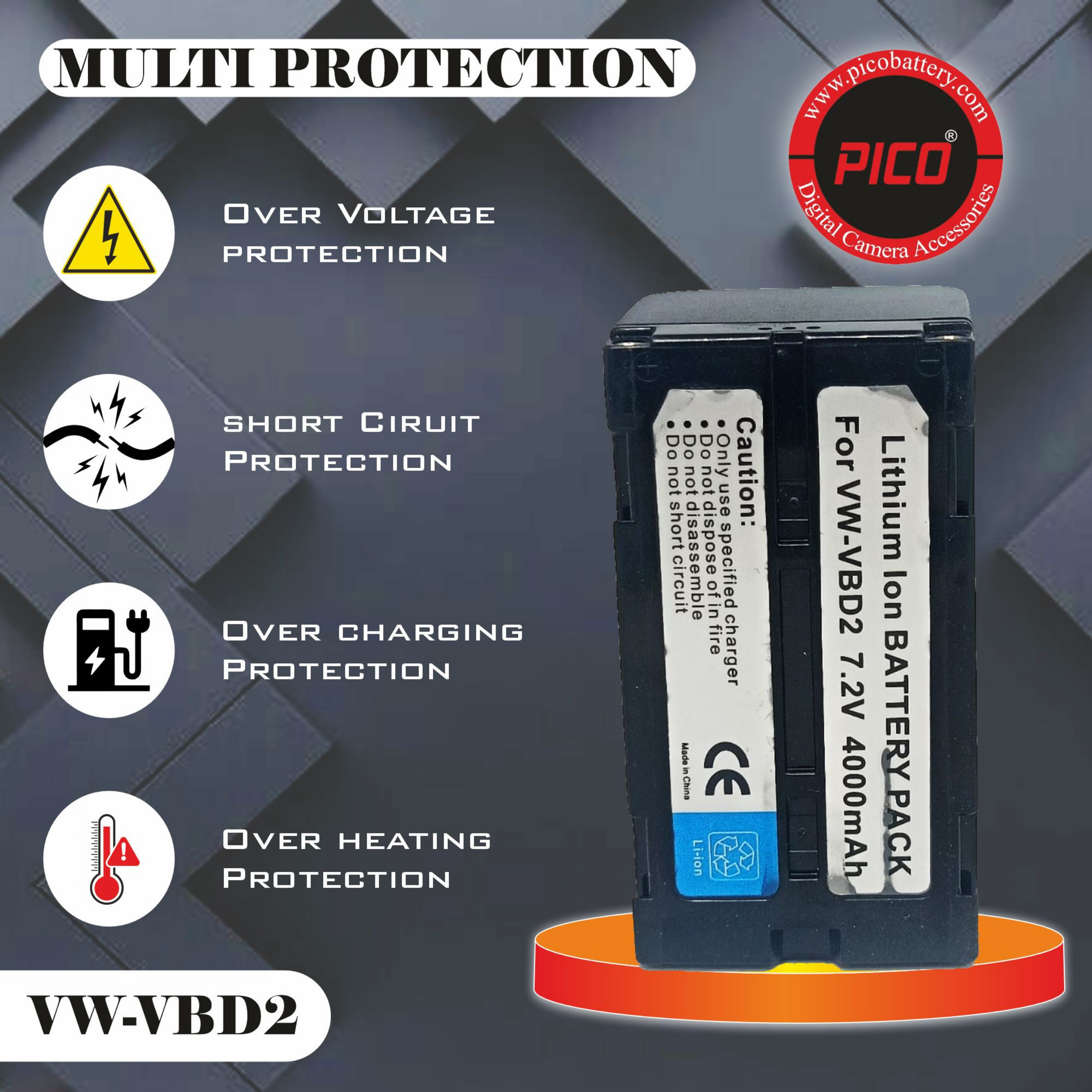 This battery is a premium replacement for the original VW-VBD2, engineered with high-quality cells to ensure consistent voltage and a long life cycle without the “memory effect.”
